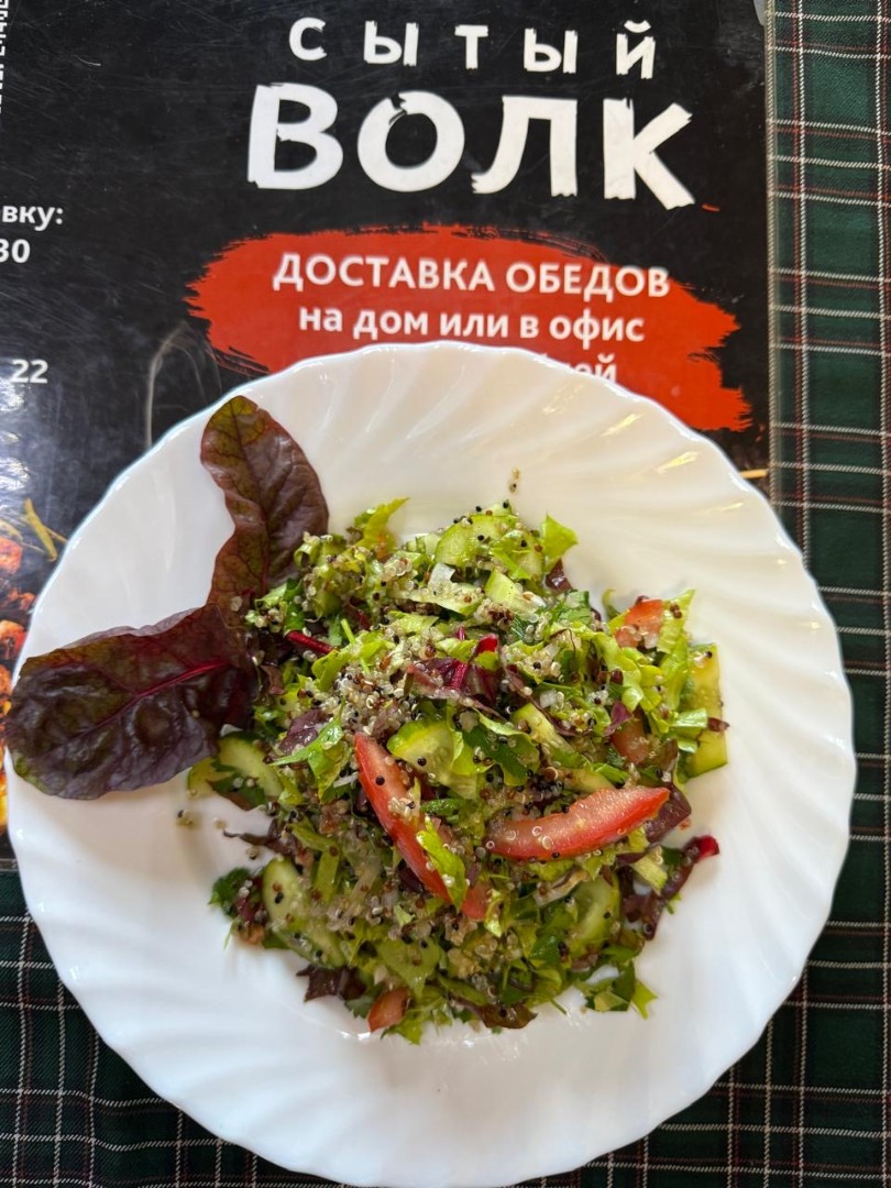 Состав:Киноа,огурцы,помидор,зелень с заправкой лимоном и оливковом маслом